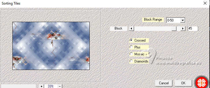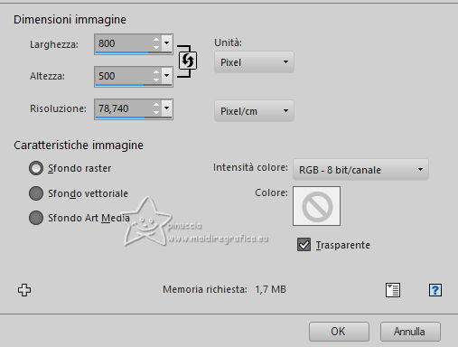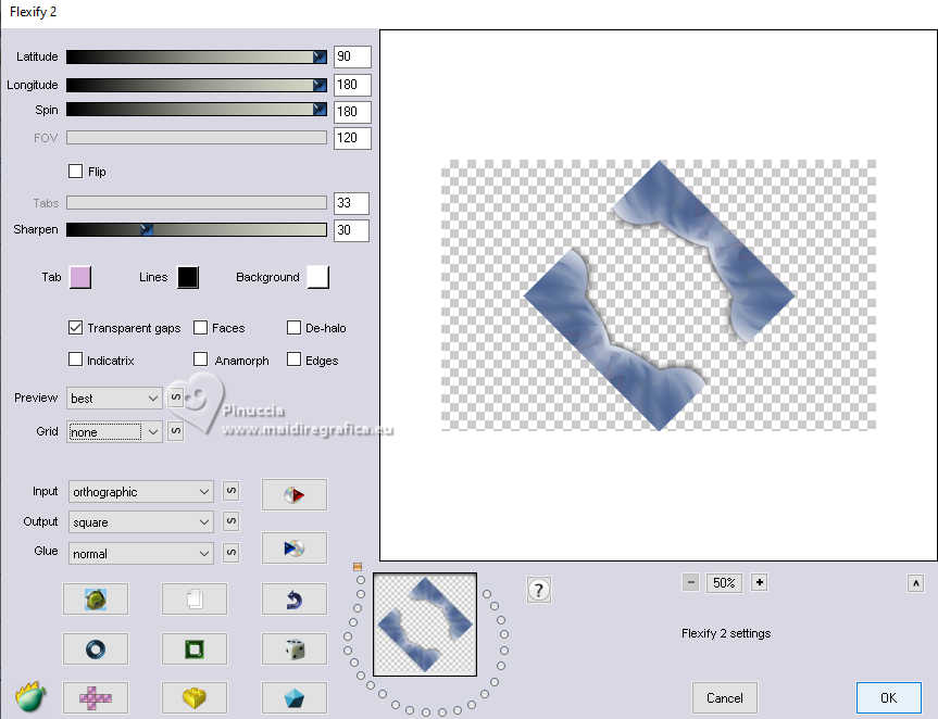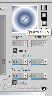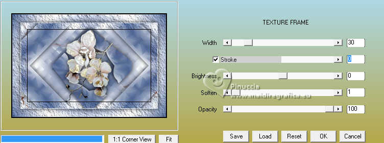 qui puoi trovare qualche risposta ai tuoi dubbi. Se l'argomento che ti interessa non è presente, ti prego di segnalarmelo. Per tradurre il tutorial ho usato PSPX9, ma può essere eseguito con ogni versione di PSP. Dalla versione X4, il comando Immagine>Rifletti è stato sostituito con Immagine>Capovolgi in orizzontale, e il comando Immagine>Capovolgi con Immagine>Capovolgi in verticale. Nelle versioni X5 e X6, le funzioni sono state migliorate rendendo disponibile il menu Oggetti. Con la nuova versione X7, sono tornati Rifletti/Capovolgi, ma con nuove differenze Vedi la scheda sull'argomento qui traduzione in francese qui Le vostre versioni quiOccorrente: ![]() Grazie per la maschera Nikita. (in questa pagina trovi i links ai siti dei creatori di tubes) ![]() in caso di dubbi, ricorda di consultare la mia sezione filtri qui Filters Unlimited 2.0 qui Mehdi - Sorting Tiles qui Simple - Top Left Mirror qui Flaming Pear - Flexify 2 qui AAA Frames - Texture Frame qui I filtri Simple si possono usare da soli o importati in Filters Unlimited (come fare vedi qui) Se un filtro fornito appare con questa icona ![]() se stai usando altri colori, sperimenta le modalità di miscelatura e opacità più adatte ai tuoi colori Nelle ultime versioni di PSP non c'é il gradiente di primo piano/sfondo (Corel_06_029) Puoi usare i gradienti delle versioni precedenti. Trovi qui i gradienti Corel X. ![]() Metti la selezione nella cartella Selezioni. 1. Imposta il colore di primo piano con #4b6391, e il colore di sfondo con #ffffff. ![]() Passa il colore di primo piano a Gradiente di primo piano/sfondo, stile Sprazzo di luce. ![]() 2. Apri una nuova immagine trasparente 800 x 500 pixels. ![]() Riempi l'immagine trasparente con il gradiente.3. Selezione>Seleziona tutto. Apri deco-e389bpng ![]() Modifica>Copia. Torna al tuo lavoro e vai a Modifica>Incolla nella selezione. Selezione>Deseleziona. 4. Effetti>Effetti di immagine>Motivo unico, con i settaggi standard. ![]() 5. Effetti>Plugins>Mehdi - Sorting Tiles. ![]() 6. Selezione>Carica/Salva selezione>Carica selezione da disco. Cerca e carica la selezione 1281a ![]() 7. Selezione>Innalza selezione a livello. Selezione>Deseleziona. 8. Effetti>Plugins>Mehdi - Sorting Tiles. ![]() 9. Effetti>Effetti 3D>Sfalsa ombra, colore nero. ![]() 10. Effetti>Plugins>Simple - Top Left Mirror. ![]() 11. Livelli>Duplica. 12. Effetti>Plugins>Flaming Pear - Flexify 2. ![]() 13. Effetti>Effetti 3D>Sfalsa ombra, colore nero. ![]() 14. Apri deco-1 ![]() Modifica>Copia. Torna al tuo lavoro e vai a Modifica>Incolla come nuovo livello. Oggetti>Allinea>Superiore. Immagine>Rifletti>Rifletti orizzontalmente. Effetti>Plugins>Simple - Top Left Mirror Adatta la modalità e/o l'opacità del livello ai tuoi colori. 15. Apri BLOEMTAK-0a3.png ![]() Modifica>Copia. Torna al tuo lavoro e vai a Modifica>Incolla come nuovo livello. Effetti>Effetti 3D>Sfalsa ombra, colore nero. ![]() 16. Immagine>Aggiungi bordatura, 1 pixel, simmetriche, colore di primo piano. Immagine>Aggiungi bordatura, 3 pixels, simmetriche, colore di sfondo. Immagine>Aggiungi bordatura, 1 pixel, simmetriche, colore di primo piano. 17. Selezione>Seleziona tutto. Immagine>Aggiungi bordatura, 50 pixels, simmetriche, colore bianco. Selezione>Inverti. Riempi la selezione con il gradiente.Selezione>Inverti. Effetti>Effetti 3D>Sfalsa ombra, colore nero. ![]() Selezione>Deseleziona. 18. Effetti>Plugins>AAA Frames - Texture Frame. ![]() 19. Immagine>Aggiungi bordatura, 1 pixel, simmetriche, colore di primo piano. Firma il tuo lavoro su un nuovo livello. Livelli>Unisci>Unisci tutto e salva in formato jpg. Per i tubes di questi esempi grazie Yvonne ![]() Mentali ![]() ![]() Se hai problemi o dubbi, o trovi un link non funzionante, o anche soltanto per un saluto, scrivimi. |