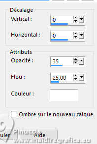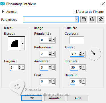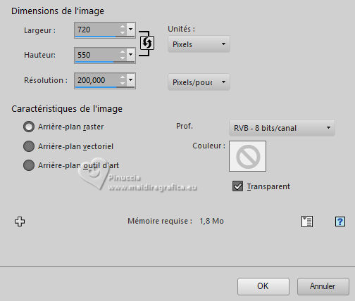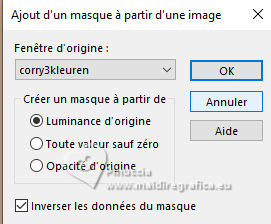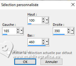 Pour traduire ce tutoriel j'ai utilisé PSPX9, mais il peut également être exécuté avec les autres versions. Suivant la version utilisée, vous pouvez obtenir des résultats différents. Depuis la version X4, la fonction Image>Miroir a été remplacée par Image>Renverser horizontalement, et Image>Renverser avec Image>Renverser verticalement. Dans les versions X5 et X6, les fonctions ont été améliorées par la mise à disposition du menu Objets. Dans la nouvelle version X7, nous avons à nouveau Miroir/Renverser, mais avec autres différences. Voir plus les détails à ce sujet ici Certaines dénominations ont changées entre les versions de PSP. Les plus frequentes dénominations utilisées: ![]() Traduction en italien ici Vos versions iciNécessaire pour réaliser ce tutoriel: ![]() (les liens des sites des tubeuses ici) Modules Externes consulter, si nécessaire, ma section de filtre ici Filters Unlimited 2.0 qui Cybia - Screenworks ici Simple - Blintz ici AP 01 [Innovations] - Lines SilverLining ici Filtres Cybia peuvent être utilisés seuls ou importés dans Filters Unlimited. voir comment le faire ici). Si un filtre est fourni avec cette icône, ![]() Si vous voulez utiliser vos propres couleurs, n'hésitez pas à changer le mode et l'opacité des calques ![]() Ouvrir le masque dans PSP et le minimiser avec le reste du matériel. 1. Placer en avant plan la couleur #e1ccb9, et en arrière plan la couleur #cbab92. ![]() 2. Ouvrir une nouvelle image transparente 720 x 550 pixels. ![]() Remplir l'image transparente avec la couleur claire.3. Calques>Nouveau calque raster. Remplir le calque avec la couleur foncée.4. Calques>Nouveau calque de masque>A partir d'une image. Ouvrir le menu deroulant sous la fenêtre d'origine et vous verrez la liste des images ouvertes. Sélectionner le masque corry3kleuren inverser les données du masque coché ![]() Calques>Fusionner>Fusionner le groupe. 5. Activer l'outil Baguette Magique ![]() ![]() et cliquer dans les cadres du masque pour les sélectionner. ![]() Calques>Nouveau calque raster. Placer en arrière plan la couleur blanche. Remplir le calque avec la couleur blanche.Sélections>Modifier>Contracter - 15 pixels. Le cadre le plus étroit est automatiquement désélectionné, car il mesure moins de 15 pixels. ![]() Remplir la sélection avec la couleur claire d'avant plan #e1ccb9.Sélections>Désélectionner tout. 6. Vous positionner sur le calque de dessous du masque, Groupe-Raster 2. Effets>Modules Externes>Filters Unlimited 2.0 - Screenworks - Dot Screen. ![]() Effets>Effets 3D>Ombre portée, couleur blanche. ![]() 7. Effets>Modules Externes>Filters Unlimited 2.0 - Edge Square - Square Edges ![]() 8. Effets>Effets 3D>Ombre portée, couleur noire. ![]() 9. Calques>Nouveau calque raster. Activer l'outil Sélection ![]() (peu importe le type de sélection, parce que avec la sélection personnalisée vous obtenez toujours un rectangle), cliquer sur Sélection personnalisée ![]() et setter ces paramètres. ![]() Remplir la sélection avec la couleur claire.Sélections>Modifier>Contracter - 4 pixels. Presser CANC sur le clavier ![]() Sélections>Désélectionner tout. Effets>Effets 3D>Biseautage intérieur. ![]() 9. Ouvrir le tube pinterest14 ![]() Édition>Copier. Revenir sur votre travail et Édition>Coller comme nouveau calque. Positionner le tube dans le cadre.10. Ouvrir deco-1-6 ![]() Édition>Copier. Revenir sur votre travail et Édition>Coller comme nouveau calque. Effets>Effets d'image>Décalage. ![]() 11. Ouvrir deco-2-6 ![]() Édition>Copier. Revenir sur votre travail et Édition>Coller comme nouveau calque. Déplacer le tube en haut à gauche.12. Ouvrir deco-3-6 ![]() Édition>Copier. Revenir sur votre travail et Édition>Coller comme nouveau calque. 13. Ouvrir deco-4-6 ![]() Édition>Copier. Revenir sur votre travail et Édition>Coller comme nouveau calque. Déplacer le tube en bas à droite.14. Image>Ajouter des bordures, 1 pixel, symétrique, couleur foncée. Sélections>Sélectionner tout. Image>Ajouter des bordures, 10 pixels, symétrique, couleur claire. Effet>Effets 3D>Ombre portée, couleur noire. ![]() Image>Ajouter des bordures, 1 pixels, symétrique, couleur foncée. Sélections>Désélectionner tout. 15. Signer votre travail sur un nouveau calque. Calques>Fusionner>Tous et enregistrer en jpg. Pour les tubes de cette versioni merci Loouise ![]() ![]() Si vous avez des problèmes, ou des doutes, ou vous trouvez un link modifié, ou seulement pour me dire que ce tutoriel vous a plu, vous pouvez m'écrire. |