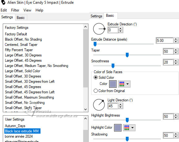 Effects>Plugins>Alien Skin Eye Candy 5 Impact - Extrude
