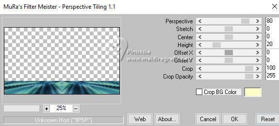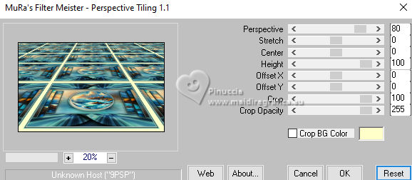 Effects>Plugins>Mura's Meister - Perspective Tiling, click on Reset to get the default settings.