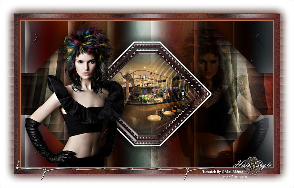 qui puoi trovare qualche risposta ai tuoi dubbi. Se l'argomento che ti interessa non è presente, ti prego di segnalarmelo. Questo tutorial, creato con PSP 2020, è stato tradotto con PSPX9, ma può essere realizzato anche con le altre versioni di PSP. Dalla versione X4, il comando Immagine>Rifletti è stato sostituito con Immagine>Capovolgi in orizzontale, e il comando Immagine>Capovolgi con Immagine>Capovolgi in verticale. Nelle versioni X5 e X6, le funzioni sono state migliorate rendendo disponibile il menu Oggetti. Con la nuova versione X7, sono tornati Rifletti>Capovolgi, ma con nuove varianti. Vedi la scheda sull'argomento qui English Translation qui ![]() Occorrente: ![]() Altri personaggi sul tema qui (non utilizzare per altri tutorial) Paesaggio di Pixabay. Il resto del materiale è di Moi-Même. (in questa pagina trovi i links ai siti dei creatori del materiale) ![]() se hai problemi con i filtri, consulta la mia sezione filtri qui Filters Unlimited 2.0 qui Mehdi - Wavy Lab 1.1. qui &<Bkg Designer sf10I> - Blinds Vertical (da importare in Unlimited) qui Mura's Meister - Perspective Tiling qui Alien Skin Eye Candy 5 Impact - Extrude qui AAA Frames - Foto Frame qui ![]() non esitare a cambiare modalità di miscelatura e opacità secondo i colori utilizzati. Metti il preset Cliccando sul file una o due volte (a seconda delle tue impostazioni), automaticamente il preset si installerà nella cartella corretta. perchè uno o due clic vedi qui ![]() Se hai problemi con il canale alfa, apri una nuova immagine trasparente 950 x 550 pixels, e usa le selezioni da disco. Imposta il colore di primo piano con #a76e52, e il colore di sfondo con #ffffff. colore 3: #0d0505 colore 4: #622b2a ![]() 1. Apri Canal_alpha_Hairstyle day Questa immagine, che sarà la base del tuo lavoro non è vuota, ma contiene le selezioni salvate sul canale alfa. Effetti>Plugins>Mehdi - Wavy Lab 1.1 questo filtro lavora con i colori della paletta: il primo il colore di sfondo, il secondo quello di primo piano; cambia gli ultimi due colori creati dal filtro: il terzo con il colore 3 #0d0505 e il quarto con il colore 4 #622b2a ![]() Regola>Sfocatura>Sfocatura gaussiana - raggio 25. ![]() 2. Livelli>Nuovo livello raster. Selezione>Seleziona tutto. Apri il tube mohawk girl hairstyle2_AIgen par MM ![]() Cancella il watermark. Immagine>Ruota a destra. ![]() Modifica>Copia. Minimizza il tube. Torna al tuo lavoro e vai a Modifica>Incolla nella selezione. 3. Regola>Sfocatura>Sfocatura radiale. ![]() Regola>Sfocatura>Sfocatura gaussiana - raggio 25. ![]() Effetti>Plugins>Filters Unlimited 2.0 - &<Bkg Designer sf10I> - Blinds Vertical. ![]() Selezione>Deseleziona. Cambia la modalità di miscelatura di questo livello in Luminanza (esistente), e abbassa l'opacità all'80%. 4. Livelli>Unisci>Unisci visibile. Regola>Messa a fuoco>Metti a fuoco. 5. Selezione>Carica/Salva selezione>Carica selezione da canale alfa. La selezione sélection 1 è subito disponibile. Devi soltanto cliccare Carica. ![]() Selezione>Innalza selezione a livello. Mantieni selezionato. 6. Effetti>Effetti di immagine>Motivo unico, con i settaggi standard. ![]() Selezione>Modifica>Espandi - 3 pixels. Premi sulla tastiera il tasto CANC ![]() Mantieni ancora selezionato. 7. Livelli>Nuovo livello raster. Riempi il livello con il colore bianco di sfondo.Selezione>Modifica>Contrai - 5 pixels. Premi sulla tastiera il tasto CANC. Mantieni sempre selezionato. 8. Livelli>Nuovo livello raster. Selezione>Modifica>Contrai - 5 pixels. Riempi la selezione con il colore bianco di sfondo.Selezione>Modifica>Contrai - 5 pixels. Premi sulla tastiera il tasto CANC. Selezione>Modifica>Contrai - 15 pixels. Riempi la selezione con il colore bianco di sfondo.Selezione>Modifica>Contrai - 5 pixels. Premi sulla tastiera il tasto CANC. Rimani su questo livello. 9. Selezione>Seleziona tutto (questa selezione sostituisce la precedente). Selezione>Mobile. Selezione>Immobilizza. Effetti>Effetti di trama>Intessitura colore intessitura: colore 4 #622b2a colore spazio: colore 3 #0d0505. ![]() Effetti>Plugins>Alien Skin Eye Candy 5 Impact - Extrude. Seleziona il preset mohawk hairstyle_MM Sotto Basic colore 4 #622b2a. ![]() Selezione>Deseleziona. 10. Livelli>Unisci>Unisci giù. Effetti>Effetti 3D>Sfalsa ombra, colore nero. ![]() 11. Attiva il livello sottostante. Modifica>Ripeti Sfalsa ombra. Poi ripeti: Effetti>Effetti 3D>Sfalsa ombra, colore nero, ombra su nuovo livello selezionato. ![]() Rimani sul livello dell'ombra. Effetti>Effetti di trama>Veneziana, colore di primo piano. ![]() Effetti>Effetti di bordo>Aumenta. 12. Attiva il livello di sfondo, Uniti. Apri l'immagine background ![]() Modifica>Copia. Torna al tuo lavoro e vai a Modifica>Incolla come nuovo livello. Cambia la modalità di miscelatura di questo livello in Sovrapponi. 13. Attiva il livello superiore. Livelli>Nuovo livello raster. Selezione>Carica/Salva selezione>Carica selezione da canale alfa. Apri il menu delle selezioni e carica la selezione sélection 2 ![]() Apri il misted ai-generated-Image 1 ![]() Modifica>Copia. Torna al tuo lavoro e vai a Modifica>Incolla nella selezione. Cambia la modalità di miscelatura di questo livello in Luce netta. Regola>Messa a fuoco>Metti a fuoco. Mantieni selezionato. 14. Livelli>Nuovo livello raster. Apri il tube glass ![]() Modifica>Copia. Torna al tuo lavoro e vai a Modifica>Incolla nella selezione. Abbassa l'opacità di questo livello al 50%. Livelli>Unisci>Unisci giù - 2 volte. Selezione>Deseleziona. 15. Modifica>Copia. Modifica>Incolla come nuova immagine, e minimizza l'immagine. Se vuoi, salva in formato png, per precauzione. 16. Apri déco cracks ![]() Cancella la firma e vai a Modifica>Copia. Torna al tuo lavoro e vai a Modifica>Incolla come nuovo livello. Abbassa l'opacità di questo livello all'80%. 17. Attiva nuovamente il tube mohawk girl hairstyle2_AIgen par MM Immagine>Ruota a sinistra. Modifica>Copia e minimizza nuovamente il tube. Torna al tuo lavoro e vai a Modifica>Incolla 