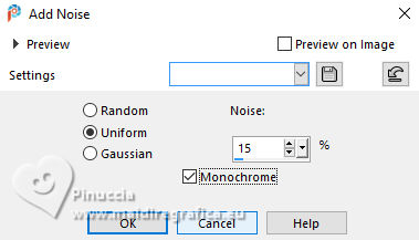 Adjust>Add/Remove Noise>Add Noise, same settings.