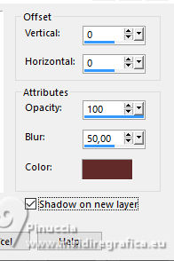 Effects>3D Effects>Drop Shadow, color 3 #0d0505, shadow on new layer not checked.