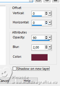 Effects>3D Effects>Drop Shadow, color 2 #6a2037.