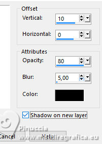 Effects>3D Effects>Drop Shadow, colore nero; shadow on new layer checked.