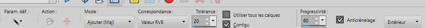 23. Activer l'outil Baguette magique , tolérance et progressivité 0,