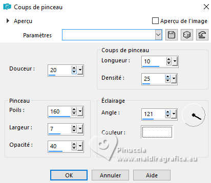 13. Effets>Effets de traits ou Effets Art Média>Coups de pinceau, couleur #ffffff.