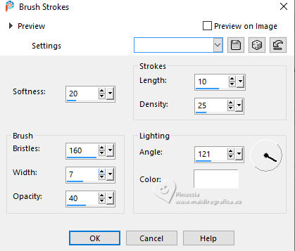 13. Effects>Art Media Effects>Brush Strokes, color #ffffff.