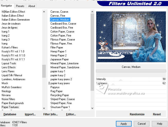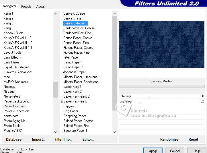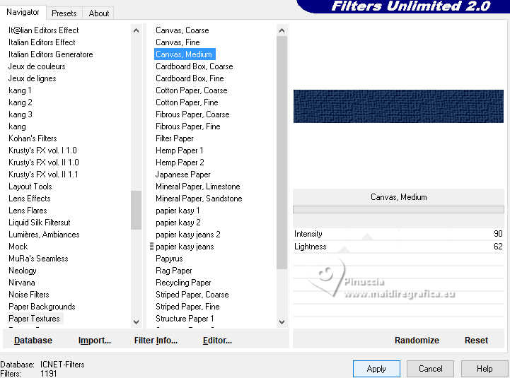 3. Effets>Modules Externes>Filters Unlimited - Paper Texture - Canvas Medium, par défaut.