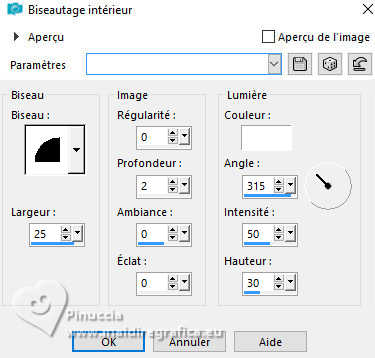 34. Effets>Effets 3D>Biseautage intérieur - couleur #ffffff.
