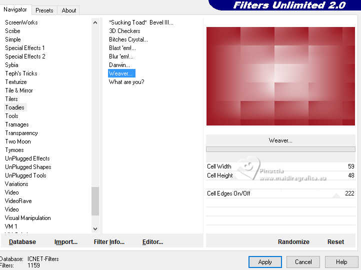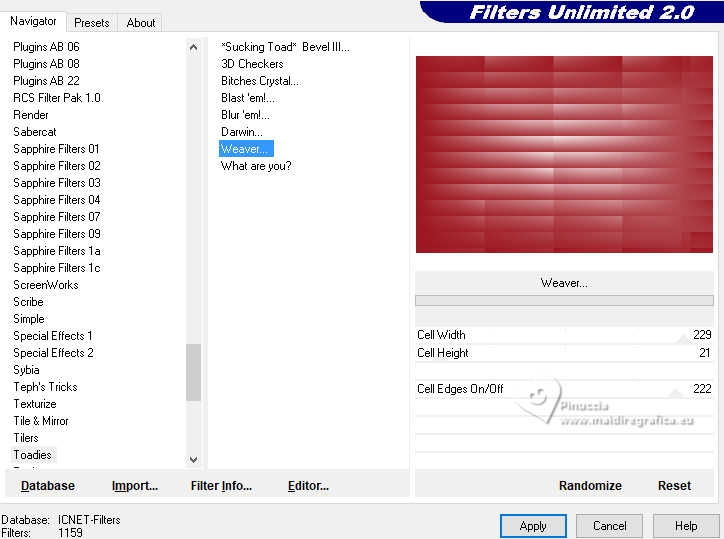 Effets>Modules Externes>Filters Unlimited 2.0 - Toadies - Weaver.
