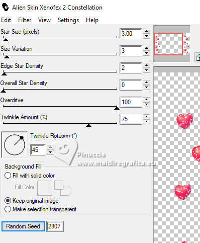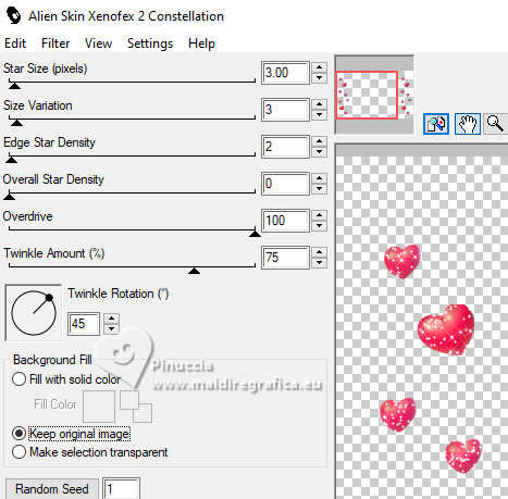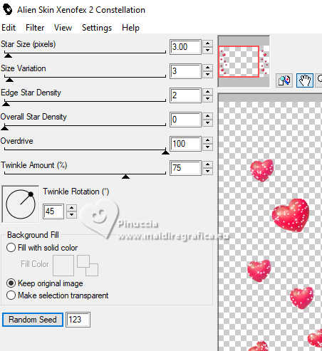 Répéter Effets>Modules Externes>Alien Skin Xenofex 2 - Constellation, cliquer sur Random Seed et ok