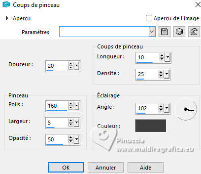 4. Effets>Effets de traits ou Effets Média Art>Coups de pinceau - couleur #404040.