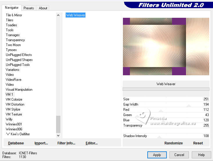 Effetti>Plugins>Filters Unlimited 2.0 - VM1 - Web Weaver