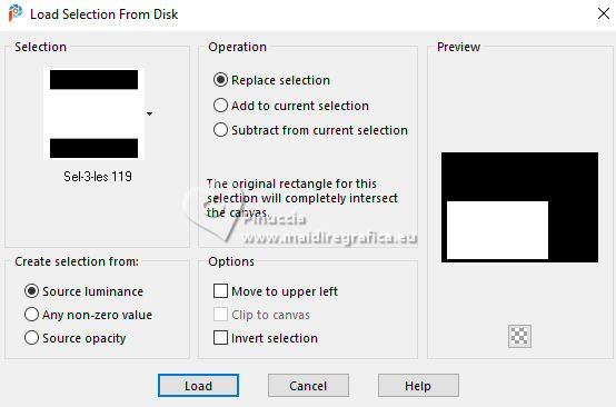 17. Selections>Load/Save Selection>Load Selection from Disk.