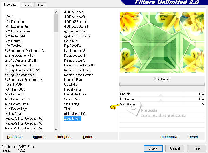 13. Effetti>Plugins>Filters Unlimited 2.0 - &<Background Kaleidoscope> - Zandflower.