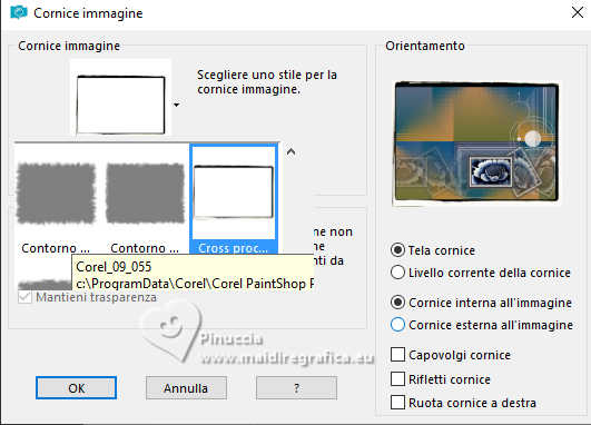 Immagine>Cornice immagine, seleziona la cornice Corel_09_055 (Cross Processing).