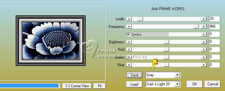 Effetti>Plugins>AAA Frames - Frame Works, con i settaggi precedenti.