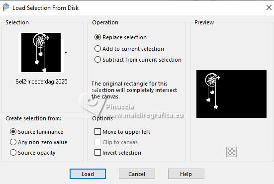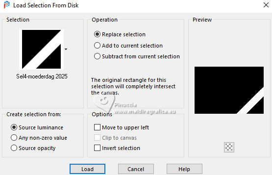 13. Selections>Load/Save Selection>Load Selection from Disk.