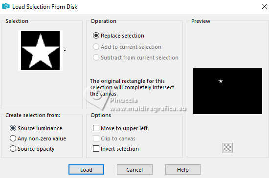 15. Selections>Load/Save Selection>Load Selection from Disk.
