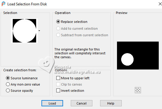 7. Selections>Load/Save Selection>Load Selection from Disk.