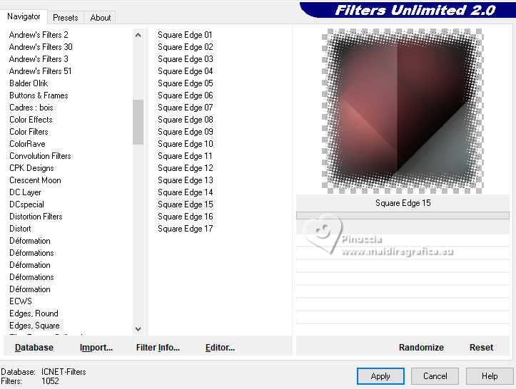 Effetti>Plugins>Filters Unlimited 2.0 - Edges,Square - Square Edge 15.