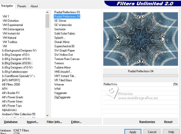 Effects>Plugins>Filters Unlimited 2.0 - &<Bkg Designer sf10III> - Radial Reflexion 04.