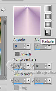qui puoi trovare qualche risposta ai tuoi dubbi. Se l'argomento che ti interessa non è presente, ti prego di segnalarmelo. Questo tutorial è stato realizzato con PSP2020 e tradotto con PSPX9, ma può essere realizzato anche con le altre versioni di PSP. Dalla versione X4, il comando Immagine>Rifletti è stato sostituito con Immagine>Capovolgi in orizzontale, e il comando Immagine>Capovolgi con Immagine>Capovolgi in verticale. Nelle versioni X5 e X6, le funzioni sono state migliorate rendendo disponibile il menu Oggetti. Con la nuova versione X7, sono tornati Rifletti>Capovolgi, ma con nuove varianti. Vedi la scheda sull'argomento qui Occorrente: Tubes a scelta: 1 tube principale 2 tube accessori Il resto del materiale qui Per due tube grazie Silvie. (in questa pagina trovi i links ai siti dei creatori di tubes) Filtri: in caso di dubbi, ricorda di consultare la mia sezione filtri qui Filters Unlimited 2.0 qui Flaming Pear - Flexify 2 qui VM Instant Art - Tripolis qui Xero - Fritillary qui I filtri VM Instant Art si possono usare da soli o importati in Filters Unlimited (come fare vedi qui) Se un filtro fornito appare con questa icona ![]() non esitare a cambiare modalità di miscelatura e opacità secondo i colori utilizzati. ![]() Metti le selezioni nella cartella Selezioni. Apri il motivo starlight-dreamshin2 in PSP e minimizzalo con il resto del materiale. 1. Apri una nuova immagine trasparente 900 x 700 pixels. Scegli due colori dal tuo tube Per l'esempio: Imposta il colore di primo piano con #f0dbe2 e il colore di sfondo con #a586ad ![]() 2. Passa il colore di primo piano a Gradiente di primo piano/sfondo, stile Radiale. ![]() Riempi l'immagine trasparente con il gradiente.3. Livelli>Duplica. Immagine>Rifletti>Rifletti verticalmente (Immagine>Capovolgi). Abbassa l'opacità di questo livello al 50%. Livelli>Unisci>Unisci giù. Effetti>Plugins>Filters Unlimited 2.0 - VM Instant Art - Tripolis. ![]() 4. Ripeti Effetti>Plugins>Filters Unlimited 2.0 - VM Instant Art - Tripolis, con i settaggi standard. ![]() 5. Effetti>Effetti di distorsione>Onda. ![]() 6. Effetti>Effetti di trama>Mosaico di vetro ![]() 7. Eventualmente, se la tua immagine ti sembra troppo scura: Regola>Luminosità e contrasto>Luminosità e contrasto ![]() 8. Rimani su questo livello. Selezione>Carica/Salva selezione>Carica selezione da disco. Cerca e carica la selezione 01ornament41-romana1 ![]() Selezione>Innalza selezione a livello. Selezione>Deseleziona. 9. Effetti>Effetti geometrici>Inclina. ![]() Livelli>Duplica. Immagine>Rifletti>Rifletti orizzontalmente. Livelli>Unisci>Unisci giù. 10. Effetti>Plugins>Flaming Pear - Flexify 2. ![]() Livelli>Duplica. Immagine>Rifletti>Rifletti verticalmente (Immagine>Capovolgi). Livelli>Unisci>Unisci giù. 11. Effetti>Effetti 3D>Sfalsa ombra, colore nero. ![]() 12. Effetti>Effetti di immagine>Scostamento. ![]() Livelli>Duplica. Immagine>Rifletti>Rifletti verticalmente (Immagine>Capovolgi). Livelli>Unisci>Unisci giù. 13. Livelli>Duplica. Immagine>Ruota per gradi - 90 gradi a destra. ![]() 14. Livelli>Nuovo livello raster. Selezione>Carica/Salva selezione>Carica selezione da disco. Cerca e carica la selezioen 01ornament39-romana1 ![]() 15. Passa il colore di primo piano a Motivi e seleziona il motivo starlight-dreamshin2 ![]() Riempi la selezione con il motivo di primo piano.Selezione>Deseleziona. 16. Effetti>Effetti di distorsione>Onda. ![]() Effetti>Effetti 3D>Sfalsa ombra, colore nero. ![]() 17. Effetti>Effetti di immagine>Scostamento. ![]() Livelli>Duplica. Immagine>Rifletti>Rifletti orizzontalmente. 18. Apri il tuo primo tube accessorio (unicorno). Modifica>Copia. Torna al tuo lavoro e vai a Modifica>Incolla come nuovo livello. Immagine>Ridimensiona, se necessario. Regola>Messa a fuoco>Metti a fuoco. il tube in basso a sinistra.Effetti>Effetti 3D>Sfalsa ombra, colore nero. ![]() 19. Apri il tuo secondo tube accessorio (uccello). Modifica>Copia. Torna al tuo lavoro e vai a Modifica>Incolla come nuovo livello. Immagine>Ridimensiona, se necessario. Regola>Messa a fuoco>Metti a fuoco. il tube in alto a sinistra.Effetti>Effetti 3D>Sfalsa ombra, colore nero. ![]() 20. Selezione>Seleziona tutto. Immagine>Aggiungi bordatura, 50 pixels, simmetriche, colore #a586ad. Selezione>Inverti. Effetti>Plugins>Xero - Fritillary, con i settaggi standard. ![]() Effetti>Effetti di bordo>Aumenta. 21. Selezione>Modifica>Contrai - 20 pixels. Imposta il colore di primo piano con il motivo Livelli>Nuovo livello raster. Riempi la selezione con il motivo.Selezione>Deseleziona. 22. Livelli>Duplica. Immagine>Rifletti>Rifletti verticalmente (Immagine>Capovolgi). Abbassa l'opacità di questo livello al 50%. Livelli>Unisci>Unisci giù. 23. Selezione>Seleziona tutto. Selezione>Modifica>Contrai - 50 pixels. Livelli>Nuovo livello raster. Effetti>Effetti 3D>Ritaglio. ![]() Selezione>Deseleziona. 24. Apri il tube principale e vai a Modifica>Copia. Torna al tuo lavoro e vai a Modifica>Incolla come nuovo livello. Immagine>Ridimensiona, se necessario. Regola>Messa a fuoco>Metti a fuoco. il tube a destra.Effetti>Effetti 3D>Sfalsa ombra, colore nero. ![]() 25. Attiva lo strumento Testo e dai un nome alla tua immagine. Scrivi il tuo nome o aggiungi il tuo watermark. Effetti>Effetti 3D>Sfalsa ombra, a scelta. 26. Immagine>Aggiungi bordatura, 1 pixel, simmetriche, colore #f0dbe2. Salva in formato jpg. Per i tubes di questo esempio grazie Silvie ![]() ![]() Le vostre versioni. Grazie ![]() Tosca dei gatti ![]() Se hai problemi o dubbi, o trovi un link non funzionante, o anche soltanto per un saluto, scrivimi. 29 Giugno 2025 |