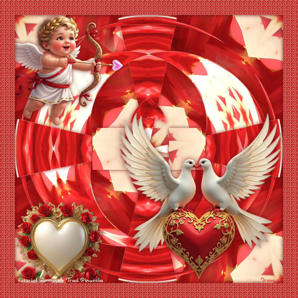 qui puoi trovare qualche risposta ai tuoi dubbi. Se l'argomento che ti interessa non è presente, ti prego di segnalarmelo. Questo tutorial è stato realizzato con PSP2020 e tradotto con PSPX9, ma può essere realizzato anche con le altre versioni di PSP. Dalla versione X4, il comando Immagine>Rifletti è stato sostituito con Immagine>Capovolgi in orizzontale, e il comando Immagine>Capovolgi con Immagine>Capovolgi in verticale. Nelle versioni X5 e X6, le funzioni sono state migliorate rendendo disponibile il menu Oggetti. Con la nuova versione X7, sono tornati Rifletti>Capovolgi, ma con nuove varianti. Vedi la scheda sull'argomento qui Occorrente: 1 tube 2 tubes accessori 1 immagine di sfondo Il resto del materiale ![]() Il tube e gli elementi scrap del mio esempio sono di Additive Pleasures. Grazie. in questa pagina trovi i links ai siti dei creatori di tubes) Filtri: in caso di dubbi, ricorda di consultare la mia sezione filtri qui Filters Unlimited 2.0 qui Mehdi - Sorting Tiles qui Flaming Pear - Flexify 2 qui VM Instant Art - Tripolis qui I filtri VM Instant Art si possono usare da soli o importati in Filters Unlimited (come fare vedi qui) Se un filtro fornito appare con questa icona ![]() non esitare a cambiare modalità di miscelatura e opacità secondo i colori utilizzati. ![]() Metti le selezioni nella cartella Selezioni. 1. Apri una nuova immagine trasparente 900 x 900 pixels. Scegli due colori dal tuo tube, per l'esempio colore di primo piano #ef7977 colore di sfondo #f5e0cd. ![]() 2. Selezione>Seleziona tutto. Apri la tua immagine e vai a Modifica>Copia. Torna al tuo lavoro e vai a Modifica>Incolla nella selezione. Apri il tuo tube e vai a Modifica>Copia. Torna al tuo lavoro e vai a Modifica>Incolla nella selezione. Selezione>Deseleziona. 3. Effetti>Plugins>Mehdi - Sorting Tiles. ![]() 4. Effetti>Effetti di riflesso>Caleidoscopio. ![]() 5. Effetti>Effetti di immagine>Motivo unico, con i settaggi standard. ![]() 6. Livelli>Duplica. Immagine>Ridimensiona, al 60%, tutti i livelli non selezionato. 7. Effetti>Plugins>VM Instant Art - Tripolis ![]() ho rifatto il tutorial moltissime volte perchè mai soddisfatta della resa dei colori. Per questo ho usato il filtro da solo, per non reimpostare i settaggi, perchè Unlimited non li tiene in memoria ![]() 8. Effetti>Plugins>Flaming Pear - Flexify 2 img src="valentin26//flexify.jpg"> 9. Immagine>Ruota per gradi - 40 gradi a destra ![]() Livelli>Duplica. Immagine>Rifletti>Rifletti verticalmente (Immagine>Capovolgi). Livelli>Unisci>Unisci giù. 10. Livelli>Duplica. Immagine>Ruota per gradi - 90 gradi a destra ![]() 11. Selezione>Carica/Salva Selezione>Carica Selezione da disco. Cerca e carica la selezione 01ornament311-romana1 ![]() Premi sulla tastiera il tasto CANC ![]() 12. Selezione>Carica/Salva Selezione>Carica Selezione da disco. Cerca e carica la selezione 01ornament312-romana1 la nuova selezione sostituirà la precedente ![]() Premi sulla tastiera il tasto CANC. Selezione>Deseleziona. 13. Attiva il livello sottostante. Selezione>Carica/Salva Selezione>Carica Selezione da disco. Cerca e carica la selezione 01ornament313-romana1 ![]() Modifica>Copia. Selezione>Deseleziona. 14. Attiva il livello superiore. Modifica>Incolla come nuovo livello. Effetti>Effetti di immagine>Scostamento. ![]() Livelli>Duplica. Immagine>Rifletti>Rifletti orizzontalmente. 15. Effetti>Effetti>Effetti 3D>Sfalsa ombra, colore nero. ![]() Attiva il livello sottostante: Modifica>Ripeti Sfalsa ombra. Se chiudi il livello inferiore, dovresti avere questo. ![]() 16. Attiva il livello superiore. Apri il tuo primo tube accessorio e vai a Modifica>Copia. Torna al tuo lavoro e vai a Modifica>Incolla come nuovo livello. Immagine>Ridimensiona, se necessario. Regola>Messa a fuoco>Accentua messa a fuoco. Sposta il tube in alto a sinistra.Effetti>Effetti 3D>Sfalsa ombra, colore nero. ![]() 17. Apri il tuo secondo tube accessorio e vai a Modifica>Copia. Torna al tuo lavoro e vai a Modifica>Incolla come nuovo livello. Immagine>Ridimensiona, se necessario. Regola>Messa a fuoco>Accentua messa a fuoco. Sposta il tube in basso a sinistra.Effetti>Effetti 3D>Sfalsa ombra, colore nero. ![]() 18. Apri il tuo tube e vai a Modifica>Copia. Torna al tuo lavoro e vai a Modifica>Incolla come nuovo livello. Immagine>Ridimensiona, se necessario. Regola>Messa a fuoco>Metti a fuoco. Sposta il tube a destra.Effetti>Effetti 3D>Sfalsa ombra, colore nero. ![]() 19. Selezione>Seleziona tutto. Immagine>Aggiungi bordatura, 50 pixels, simmetriche, colore di primo piano #ef7977. Selezione>Inverti. Effetti>Effetti di trama>Intessitura colore intessitura: colore chiaro di primo piano colore spazio: per il mio esempio ho usato un colore un po' più scuro del colore di sfondo. ![]() Regola>Messa a fuoco>Metti a fuoco. 20. Selezione>Inverti. Effetti>Effetti 3D>Ritaglio. ![]() Selezione>Deseleziona. 21. Attiva lo strumento Testo ![]() Scrivi il tuo nome o aggiungi il tuo watermark. Effetti>Effetti 3D>Sfalsa ombra, a scelta. 22. Livelli>Unisci>Unisci tutto. Salva in formato jpg. ![]() Le vostre versioni. Grazie ![]() Irene ![]() Se hai problemi o dubbi, o trovi un link non funzionante, o anche soltanto per un saluto, scrivimi. |
