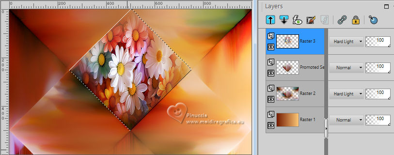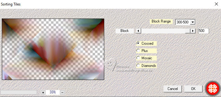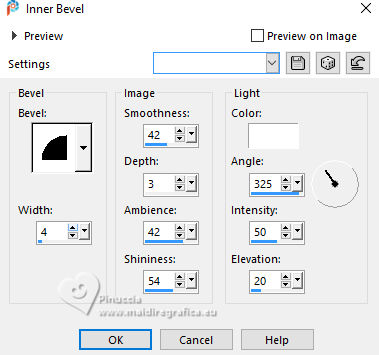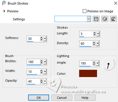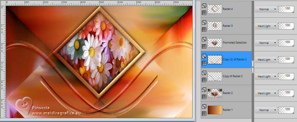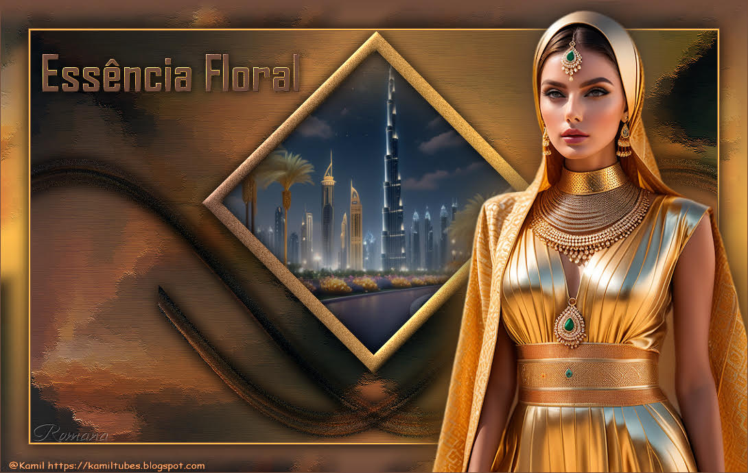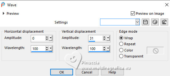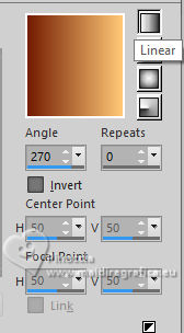 For this tutorial, you will need: ![]() The material is by Inácia Neves. (The links of the tubemakers here). Plugins consult, if necessary, my filter section here Mehdi - Sorting Tiles here ![]() You can change Blend Modes according to your colors. In the newest versions of PSP, you don't find the foreground/background gradient (Corel_06_029). You can use the gradients of the older versions. The Gradient of CorelX here ![]() Copy the selections in the Selections Folder. 1. Choose 2 colors from your misted. For me: Set your foreground color to the light color #ffc876, and your background color to the dark color #731c02. ![]() third color: #000000 Set your foreground color to a Foreground/Background Gradient, style Linear. ![]() 2. Open a new transparent image 1000 x 600 pixels. Flood Fill the transparent image with your Gradient.3. Layers>New Raster Layer. Selections>Select All. Open your flowers misted ![]() Edit>Copy. Go back to your work and go to Edit>Paste Into Selection. Selections>Select None. 4. Adjust>Sharpness>Sharpen More. Effects>Image Effects>Seamless Tiling, default settings. ![]() 5. Adjust>Blur>Motion Blur ![]() Edit>Repeat Motion Blur. Effects>Edge Effects>Enhance. 6. Effects>Plugins>Mehdi - Sorting Tiles. ![]() Change the Blend Mode of this layer to Hard Light, opacity 100 ![]() 7. Selections>Load/Save selection>Load Selection from Disk. Look for and load the selection Sel01_EssenciaFloral ![]() Selections>Promote Selection to Layer. Layers>New Raster Layer. 8. Edit>Paste into Selection - your floral misted is still in memory. Adjust>Sharpness>Sharpen. Change the Blend Mode of this layer to Hard Light, opacity 100. ![]() 9. Layers>New Raster Layer. Selections>Modify>Select Selection Borders ![]() Flood Fill the selection with your Gradient.![]() 10. Adjust>Add/Remove Noise>Add Noise ![]() Effects>3D Effects>Inner Bevel ![]() Selections>Select None. Effects>3D Effects>Drop Shadow, color black #000000. ![]() 11. Activate the layer Raster 2. Layers>Duplicate. Effects>Geometric Effects>Perspective Horizontal ![]() Image>Mirror>Mirror Horizontal. Repeat Effects>Geometric Effects>Perspective Horizontal, same settings. ![]() Adjust>Add/Remove Noise>Add Noise, same settings. ![]() 12. Adjust>Sharpness>Sharpen. Effects>Distortion Effects>Wave ![]() 13. K key to activate your Pick Tool ![]() Position X: -186,00 - Position Y: 186,00. ![]() Layers>Duplicate. Image>Mirror>Mirror Horizontal. Keep the Blend Mode of this layer to Hard Light. ![]() Layers>Merge>Merge Down. Effects>3D Effects>Drop Shadow, color black #000000. ![]() 14. Activate the layer Raster 2. Adjust>Add/Remove Noise>Add Noise, same settings ![]() 15. Effects>Art Media Effects>Brush Strokes, background color ![]() 16. Activate the layer Raster 1. Effects>Texture Effects>Fur. ![]() Effects>Edge Effects>Enhance. 17. Image>Add borders, 1 pixel, symmetric, color black #000000. Image>Add borders, 2 pixels, symmetric, light color #ffc876. Image>Add borders, 1 pixel, symmetric, color black #000000. 18. Selections>Select All. Image>Add Bordes - 40 pixels, symmetric, whatever color. Selections>Invert. Change the settings of your Gradient ![]() Flood Fill the selection with your Gradient.19. Layers>New Raster Layer. Selections>Invert. Your misted floral should be always in memory: Edit>Paste into Selection. Effects>Image Effects>Seamless Tiling, default settings. ![]() Press CANC on the keyboard ![]() to erase the central image ![]() 20. Selections>Invert. Adjust>Sharpness>Sharpen More. Change the Blend Mode of this layer to Hard Light, opacity 100. ![]() 21. Adjust>Blur>Motion Blur, same settings ![]() Edit>Repeat Motion Blur. Effects>Art Media Effects>Brush Strokes, same settings ![]() 22. Layers>Merge>Merge Down. Selections>Invert. Effects>3D Effects>Drop Shadow, color black #000000. ![]() Selections>Select None. 23. Layers>New Raster Layer. Selections>Load/Save Selection>Load Selection From Disk. Look for and load the selection Sel02_EssenciaFloral ![]() Flood Fill the selection with the last Gradient.![]() 24. Adjust>Add/Remove Noise>Add Noise, same settings ![]() Effects>3D Effects>Inner Bevel, same settings. ![]() Keep selected. 25. Layers>New Raster Layer. Selections>Modify>Expand - 1 pixel. Set your foreground color to black #000000. Flood Fill the selection with color black.Layers>Arrange>Move Down. Selections>Select None. Effects>3D Effects>Drop Shadow, color black #000000. ![]() Activate the layer Raster 2. Layers>Merge>Merge Down. 26. Open the tube 1101MulherByPqnaAlice ![]() Erase the watermark and go to Edit>Copy. Go back to your work and go to Edit>Paste as New Layer. Image>Resize, to 65%, resize all layers not checked. Image>Mirror>Mirror Horizontal. Objects>Align>Top. Objects> Align> Right. Adjust>Sharpness>Sharpen. 27. Layers>Duplicate. Adjust>Blur>Gaussian Blur - radius 30 ![]() Layers>Arrange>Move Down. Change the Blend Mode of this layer to Multiply We have this ![]() 28. Image>Add Borders - 1 pixels, symmetric, color black #000000. 29. Sign your work and save as jpg. For the tubes of this version thanks Wieske and Virginia . ![]() ![]() Your versions. Thanks![]() Lynnette ![]() Jolcsi ![]() Romana ![]() Elly ![]() ![]() If you have problems or doubts, or you find a not worked link, or only for tell me that you enjoyed this tutorial, write to me. |