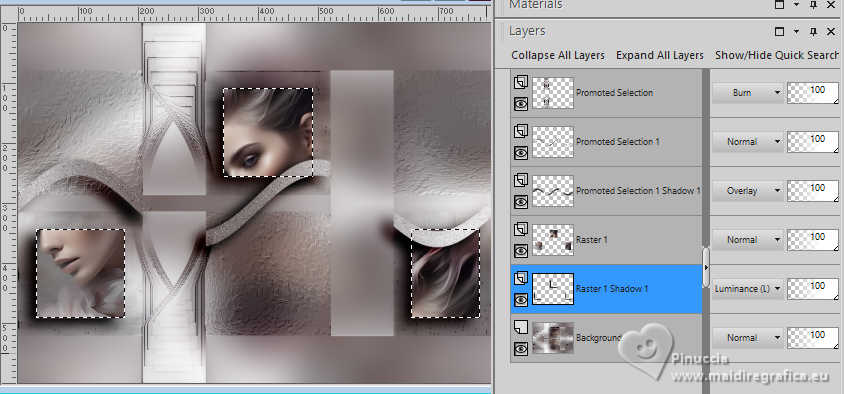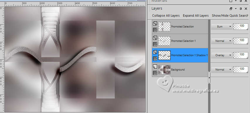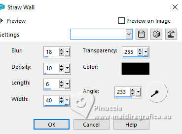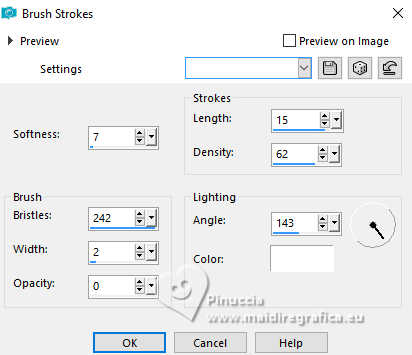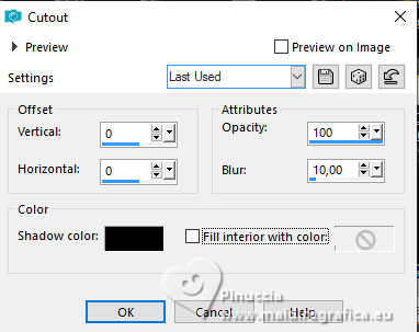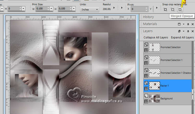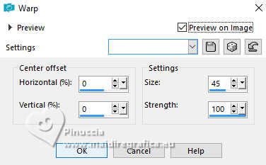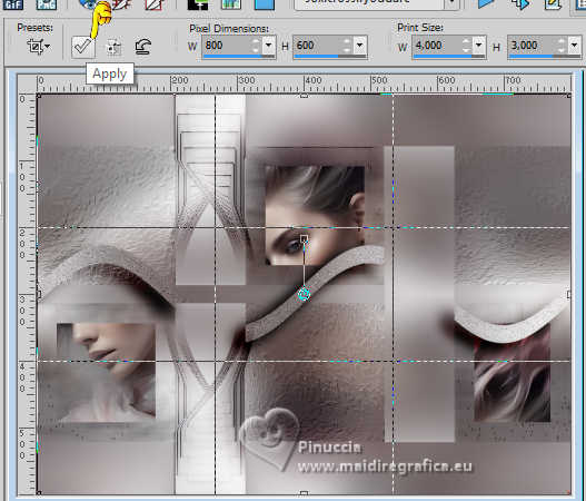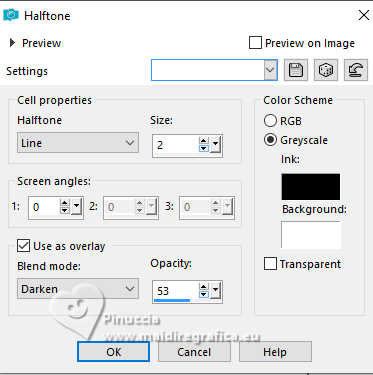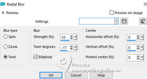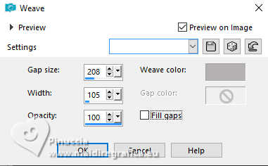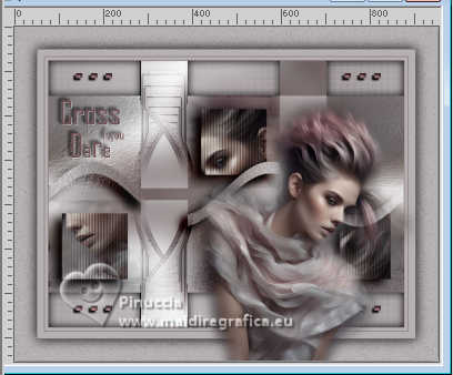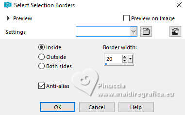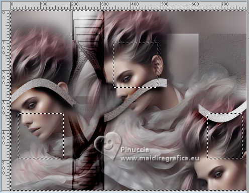 For this tutorial, you will need: ![]() Thanks for the tube PqnaAlice. (The links of the tubemakers here). Filters ![]() None ![]() You can change Blend Modes according to your colors. ![]() Copy the Selections in the Selections Folder. 1. Choose 2 colors to work. For the example: Set your foreground color to #6d4f53, and your background color to #b5b0b2. ![]() 2. Open a new transparent image 800 x 600 pixels. Selections>Select All. Open your woman's misted 1257MulherbyPqnaAlice ![]() Erase the watermark and go to Edit>Copy. Go back to your work and go to Edit>Paste Into Selection. Selections>Select None. 3. Effects>Image Effects>Seamless Tiling, default settings. ![]() Layers>Merge>Merge All. Adjust>Blur>Gaussian Blur - radius 30. ![]() Effects>Texture Effects>Weave weave color: background color ![]() 4. Effects>Reflection Effects>Rotating Mirror. ![]() 5. Selections>Load/Save Selections>Load Selection From Disk. Look for and load the selection 286_Xiki_1 ![]() Selections>Promote Selection to Layer. The woman's misted is still in memory: Edit>Paste Into Selection. Adjust>Blur>Radial Blur. ![]() 6. Effects>Edge Effects>Enhance. Edit>Repeat Enhance Edges. Selections>Modify>Select Selection Borders. ![]() 7. Layers>New Raster Layer. Effects>3D Effects>Cutout. ![]() 8. Selections>Select None. Layers>Merge>Merge Down. Effects>Reflection Effects>Feedback. ![]() 9. Effects>Distortion Effects>Warp. ![]() Layers>Duplicate. Image>Flip>Flip Horizontal. Pick Tool ![]() Position X: 205,00 - Position Y: 0.00 ![]() Layers>Merge>Merge Down. 10. Selections>Load/Save Selections>Load Selection From Disk. Look for and load the selection 286_Xiki_7. ![]() Edit>Cut or press CANC on the keyboard - 2 times. Selections>Select None. Layers>Properties>General> Blend Mode: Burn 11. Activate your background layer. Selections>Load/Save Selections>Load Selection From Disk. Look for and load the selection 286_Xiki_3. ![]() Selections>Promote Selection to Layer. Selections>Select None. Effects>Distortion Effects>Wave. ![]() 12. Selections>Load/Save Selections>Load Selection From Disk. Look for and load the selection 286_Xiki_2 ![]() Edit>Cut or press CANC on the keyboard. Selections>Select None. Selections>Load/Save Selections>Load Selection From Disk. Look for and load again the selection 286_Xiki_1 . ![]() Edit>Cut or press CANC. Selections>Select None. 13. Adjust>Add/Remove Noise>Add Noise. ![]() Effects>3D Effects>Drop Shadow, color black #000000 shadow on new layer checked. ![]() Stay on the shadow's layer: Promoted Selection 1 Shadow 1 Layers>Properties>General> Blend Mode: Overlay. ![]() 14. Activate your background layer. Selections>Load/Save Selections>Load Selection From Disk. Look for and load the selection 286_Xiki_4 ![]() Effects>Art Media Effects>Brush Strokes ![]() Selections>Select None. 15. Selections>Load/Save Selections>Load Selection From Disk. Look for and load the selection 286_Xiki_5 ![]() Effects>Texture Effects>Straw Wall. ![]() 16. Selections>Modify>Contract - 30 pixels. Selections>Invert. Activate again your main tube for my example, before copying the tube, I did Image>Mirror>Mirror horizontal Edit>Copy. Go back to your work and go to Edit>Paste as new layer. With the your Move Tool , move and position parts of the misted layer within the selections. I copied and pasted three times to get the parts I wanted, then merged these layers applying Merge Down, before pressing Delete. ![]() Edit>Cut or press CANC. Selections>Select None. 17. Activate your Crop Tool ![]() Click on Merged Opaque .... ![]() ... and click Apply ![]() 18. Selections>Load/Save Selections>Load Selection From Disk. Look for and load again the selection 286_Xiki_5 ![]() Selections>Modify>Contract - 30 pixels. Effects>3D Effects>Drop Shadow, same settings, color black #000000 and shadow on new layer checked. ![]() Stay on the shadow's layer, Promoted Selection 1 Shadow. Layers>Properties>General> Blend Mode: Luminance (L). ![]() 19. Activate the layer above, Raster 1 (the layer with the little squares) Effects>Artistic Effects>Halftone. ![]() Selections>Select None. 20. Activate your background layer. Selections>Load/Save Selections>Load Selection From Disk. Look for and load the selection 286_Xiki_6 Effects>Texture Effects>Blinds - background color. ![]() Repeat the Blinds Effect horizontal checked. ![]() 21. Layers>New Raster Layer. Effects>3D Effects>Cutout. ![]() Selections>Select None. 22. Open DecorCIYD_Xiki ![]() Edit>Copy. Go back to your work and go to Edit>Paste as new layer. Pick Tool ![]() Position X: 52,00 - Position Y: 28,00. ![]() 23. Image>Add Borders, 1 pixel, symmetric, foreground color. Image>Add Borders, 8 pixels, symmetric, background color. Image>Add Borders, 1 pixel, symmetric, foreground color. Image>Add Borders, 16 pixels, symmetric, background color. Image>Add Borders, 1 pixel, symmetric, foreground color. Selections>Select All Image>Add Borders, 50 pixels, symmetric, background color. 24. Effects>3D Effects>Drop Shadow, color black #000000, shadow on new layer not checked. ![]() Selections>Invert. Adjust>Add/Remove Noise>Add Noise. ![]() Selections>Select None. 25. Open TituloCIYD_Xiki ![]() Edit>Copy. Go back to your work and go to Edit>Paste as new layer. Pick Tool ![]() Position X: 90,00 - Position Y: 153,00. ![]() 26. Activate again your main tube and go to Edit>Copy. Go back to your work and go to Edit>Paste as New Layer. Place the tube to your liking, or see my example.for me, I resized the tube to 80% ![]() Effects>3D Effects>Drop Shadow, at your choice. 27. Image>Add Borders, 1 pixel, symmetric, foreground color. 28. Sign your work and save as jpg. For the tube of this version thanks Luz Cristina ![]() ![]() Your versions. Thanks ![]() JMercedes ![]() Kika ![]() Marion ![]() Jolcsi ![]() If you have problems or doubts, or you find a not worked link, or only for tell me that you enjoyed this tutorial, write to me. |