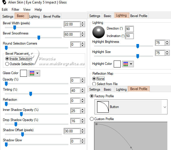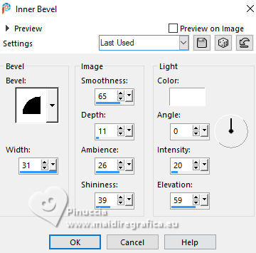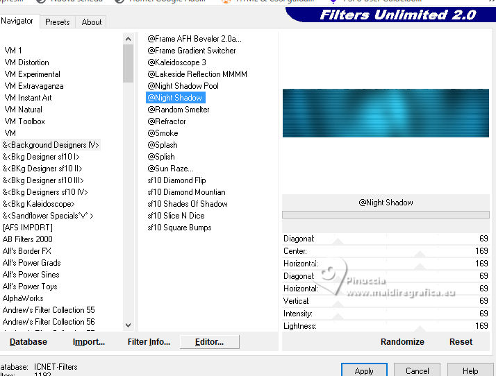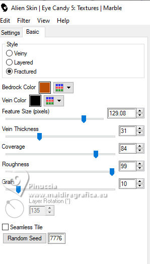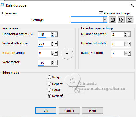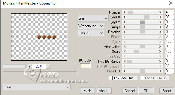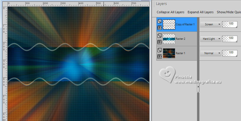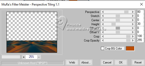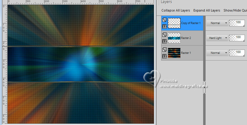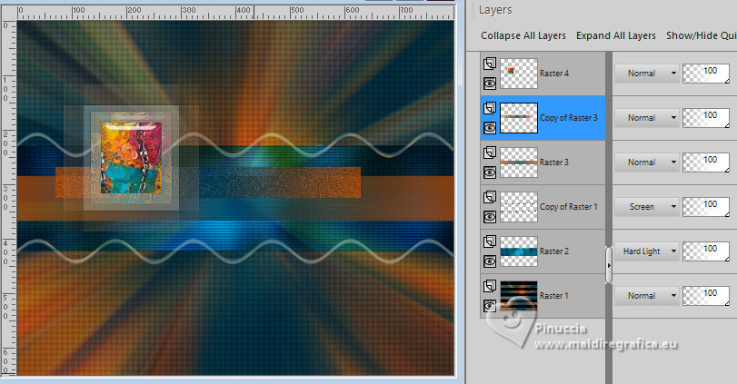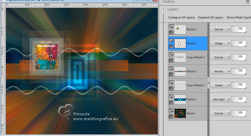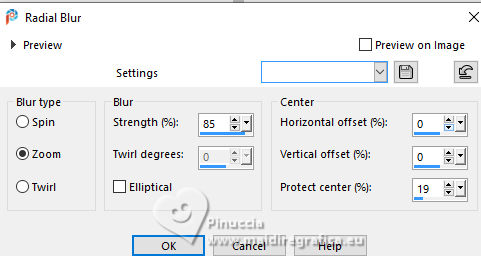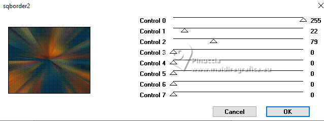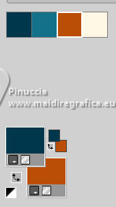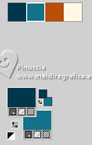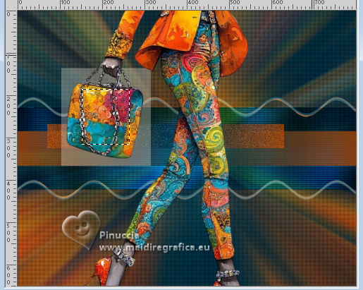 For this tutorial, you will need: ![]() Thanks for the tube and the mask PqnaAlice and Narah. (The links of the tubemakers here). ![]() consult, if necessary, my filter section here Filters Unlimited 2.0 here &<Background Designers IV> - @Night Shadow (to import in Unlimited) here Carolaine and Sensibility - CS-Texture here AFS IMPORT - sqborder2 here Alien Skin Eye Candy 5 Impact - Glass here Alien Skin Eye Candy 5 Textures - Marble here Toadies - What are you here Mura's Meister - Copies, Perspective Tiling here Filters AFS IMPORT and Toadies can be used alone or imported into Filters Unlimited. (How do, you see here) If a plugin supplied appears with this icon ![]() You can change Blend Modes according to your colors. In the newest versions of PSP, you don't find the foreground/background gradient (Corel_06_029). You can use the gradients of the older versions. The Gradient of CorelX here ![]() 1. Choose 4 colors to work. Foreground: #00374e Background: #157289 ![]() Color 3: #bb4e07 Color 4: #fff7e4 2. Open AlphaChannel_Ziki Window>Duplicate or, on the keyboard, shift+D to make a copy. ![]() Close the original. The copy, that will be the basis of your work, is not empty, but contains the selections saved to alpha channel. Flood Fill the transparent image with your foreground color.Selections>Select All. 3. Open the tube 1298MulherByPqnaAlice ![]() Erase the watermark and go to Edit>Copy. Minimize the tube. Go back to your work and go to Edit>Paste Into Selection. Selections>Select None. Effects>Image Effects>Seamless Tiling, default settings ![]() 4. Adjust>Blur>Radial Blur. ![]() 5. Layers>Duplicate. Close the layer Copy of Raster 1. Activate the layer below of the original, Raster 1. Effects>Plugins>AFS IMPORT - sqborder2. ![]() 6. Open and activate the layer above, Copy of Raster 1. Effecs>Geometric Effects>Perspective - Horizontal. ![]() Repeat Effecs>Geometric Effects>Perspective, -99. ![]() Effects>Reflection Effects>Kaleidoscope. ![]() 7. Activate your Magic Wand Tool , tolerance and feather 0,and click between the lines to select them. ![]() Selections>Modify>Expand - 3 pixels. Layers>New Raster Layer. Set your foreground color to a Foreground/Background Gradient, style Linear. ![]() Flood fill the selection with your Gradient.8. Effects>Plugins>Carolaine and Sensibility - Cs_Texture. ![]() 9. Effects>Plugins>Filters Unlimited 2.0 - &<Background Designers IV> - @Night Shadow. ![]() Selections>Select None. Layers>Arrange>Move Down. Layers>Properties>General>Blend Mode: Hard Light. 10. Activate the layer Copy of Raster 1. ![]() Effects>Distortion Effects>Wave. ![]() Layers>Properties>General>Blend Mode: Screen. ![]() 11. Selections>Load/Save Selections>Load Selection From Alpha Channel. The selection Selection #1 is immediately available. You just have to click Load. ![]() Layers>New Raster Layer. Reduce the opacity of your Flood Fill Tool to 70%. Set your background color to the color 3 and keep the Linear Foreground Gradient ![]() Flood Fill the selection with your Gradient.Selections>Select None. 12. Layers>Duplicate. Image>Resize, to 70%, resize all layers not checked. Pick Tool ![]() Position X: 70,00 - Position Y: 268,00. ![]() Adjust>Add/Remove Noise>Add Noise. ![]() 13. Selections>Load/Save Selections>Load Selection From Alpha Channel. Open the selections menu and load the selection Selection #2 ![]() Layers>New Raster Layer. Reduce the opacity of your Flood Fill Tool to 30% Set your foreground color to the color4. ![]() Flood Fill the selection with your foreground color.Selections>Modify>Contarct - 50 pixels. 14. Activat again the tube 1298MulherByPqnaAlice and go to Edit>Copy. Go back to your work and go to Edit>Paste as New Layer. Move the tube on the selectionleaving a portion visible: I placed a very colorful part of the bag. ![]() Selections>Invert. Press CANC on the keyboard .15. Selections>Invert. Effects>Plugins>Alien Skin Eye Candy 5 Impact - Glass. ![]() Selections>Select None. 16. Layers>Merge>Merge Down. Selections>Load/Save Selections>Load Selection From Alpha Channel. Open the selections menu and load again the selection Selection #2 ![]() Selections>Modify>Contract - 50 pixels. Selections>Invert. Effects>Plugins>Toadies - What are you. ![]() Effects>Edge Effects>Enhance. Selections>Select None. 17. Activate the layer Copy of Raster 3. ![]() Layers>New Raster Layer. Selections>Load/Save Selections>Load Selection From Alpha Channel. Open the selections menu and load the selection Selection #3 ![]() Reduce the opacity of your Flood Fill Tool to 40%. Flood Fill the selection with your background color (color 3).Selections>Modify>Contract - 15 pixels. Press CANC on the keyboard. Selections>Modify>Contract - 15 pixels. Flood Fill the selection with your background color.Selections>Modify>Contract - 15 pixels. Press CANC on the keyboard. Selections>Modify>Contract - 15 pixels. Flood Fill the selection with your foreground color.Selections>Modify>Contract - 15 pixels. Press CANC on the keyboard. Selections>Modify>Contract - 15 pixels. Flood Fill the selection with the color 4 (now foreground color).Selections>Modify>Contract - 15 pixels. Press CANC on the keyboard. Selections>Select None. Layers>Properties>General>Blend Mode: Dodge. Effects>Edge Effects>Enhance. ![]() 18. Layers>New Raster Layer. Selections>Load/Save Selections>Load Selection From Alpha Channel. Open the selection menu and load the selection Selection #4 ![]() Opacity of your Flood Fill Tool again to 100. Flood Fill the selection with the color 3 (now background color).Effects>Plugins>Alien Skin Eye Candy 5 Textures - Marble. Bedrock color: color 3 Vein color: black #000000 ![]() 19. Effects>3D Effects>Inner Bevel. ![]() Selections>Select None. Effects>3D Effects>Drop Shadow, color black #000000. ![]() 20. Layers>Duplicate. Image>Resize, to 30%, resize all layers not checked. Adjust>Sharpness>Sharpen. Pick Tool ![]() Position X: 219,00 - Position Y: 369,00. ![]() 21. Edit>Copy. Edit>Paste as Ne