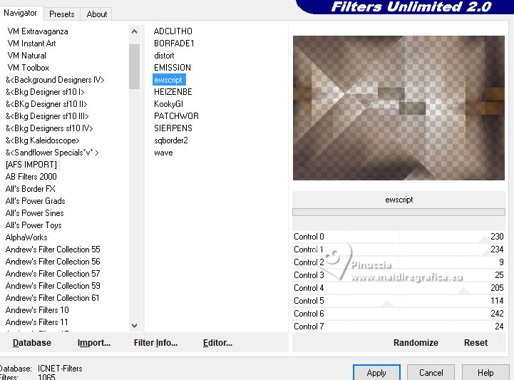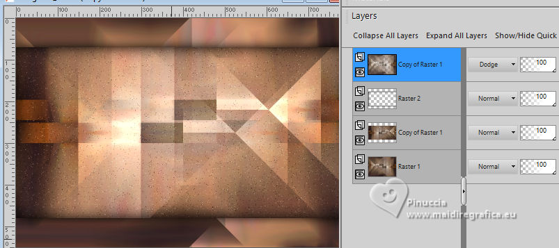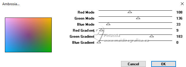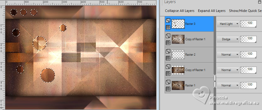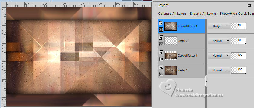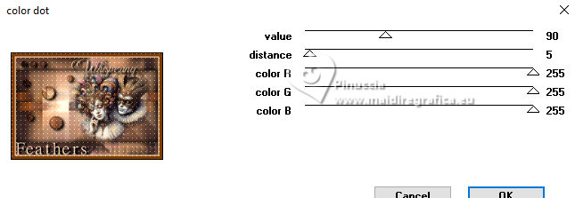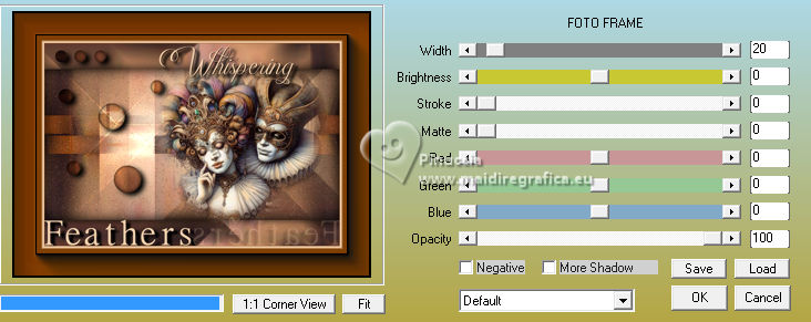 For this tutorial, you will need: ![]() For the tube thanks PqnaAlice. The rest of the material is by Soxikibem. (The links of the tubemakers here). ![]() consult, if necessary, my filter section here Filters Unlimited 2.0 here Mehdi - Sorting Tiles here Penta.com - Color Dot here Simple - Pizza Slice Mirror here AFS IMPORT - ewscript here AAA Frames - Foto Frame here Filters Penta.com, AFS IMPORT and Simple can be used alone or imported into Filters Unlimited. (How do, you see here) If a plugin supplied appears with this icon ![]() You can change Blend Modes according to your colors. ![]() Copy the Selections in the Selections Folder. 1. Choose 2 colors to work. Set your foreground color to #7c3d04, and your background color to #f1ceab. ![]() 2. Open a new transparent image 800 x 550 pixels. Flood Fill the transparent image with your foreground color.Selections>Select All. 3. Open the misted 034CarnavalByPqnaAlice ![]() Erase the watermark and go to Edit>Copy. Go back to your work and go to Edit>Paste Into Selections. Selections>Select None. 4. Effects>Image Effects>Seamless Tiling, default settings. ![]() Adjust>Blur>Radial Blur. ![]() 5. Effects>Plugins>Mehdi - Sorting Tiles. ![]() 6. Effects>Plugins>Simple - Pizza Slice Mirror. This Effect works without window; result ![]() Effects>Image Effects>Seamless Tiling, Stutter Diagonal ![]() 7. Layers>Duplicate. Selections>Load/Save Selections>Load Selections From Disk. Look for and load the selection WFeathers_Xiki1 ![]() Press CANC on the keyboard ![]() Selections>Select None. Image>Mirror>Mirror Horizontal. 8. Adjust>Add/Remove Noise>Add Noise. ![]() 9. Layers>New Raster Layer. Selections>Load/Save Selections>Load Selections From Disk. Look for and load the selection WFeathers_Xiki2 ![]() Effects>3D Effects>Cutout. ![]() 10. Effects>3D Effects>Drop Shadow, color black #000000. ![]() Selections>Select None. 11. Activate the layer Raster 1. Layers>Duplicate. Layers>Arrange>Bring to Top. Effects>Plugins>Filters Unlimited 2.0 - AFS Import - ewscript. ![]() 12. Layers>Properties>General: Blend Mode: Dodge. ![]() Effects>Edge Effects>Dilate. Edit>Repeat Dilate. 13. Activate again the layer Raster 1. Effects>Plugins>Penta.com - Color dot. ![]() 14. Activate the layer above, Copy of Raster 1. Edit>Copy Activate your top layer, also this named Copy of Raster 1. ![]() Layers>New Raster layer. Selections>Load/Save Selections>Load Selections From Disk. Look for and load the selection WFeathers_Xiki3 ![]() Edit>Paste into Selection ![]() 15. Adjust>Sharpness>Sharpen. Layers>Properties>General> Blend Mode: Hard Light. ![]() 16. Layers>New Raster Layer. Effects>3D Effects>Cutout. ![]() 17. Effects>3D Effects>Drop Shadow, color black #000000. ![]() Selections>Select None. Your tag and the layers. ![]() 18. Activate again your misted and go to Edit>Copy. Go back to your work and go to Edit>Paste as New Layer. For my example, I resized to 70%, resize all layers not checked. Move the tube to the right side.Effects>3D Effects>Drop Shadow, at your choice. 19. Open WF_titulo_Xiki ![]() Erase the watermark and go to Edit>Copy. Go back to your work and go to Edit>Paste as New Layer. Pick Tool ![]() Position X: 0,00 - Position Y: 8,00. ![]() 21. Image>Add borders, 1 pixel, symmetric, foreground color. Image>Add borders, 5 pixels, symmetric, background color. Image>Add borders, 1 pixel, symmetric, foreground color. Image>Add borders, 1 pixel, symmetric, background color. 22. Selections>Select All. Image>Add borders, 15 pixels, symmetric, foreground color. Selections>Invert. Effects>Plugins>Penta.com - Color Dot. ![]() Selections>Select None. 23. Image>Add borders, 5 pixels, symmetric, background color. Selections>Select All. Image>Add borders, 25 pixels, symmetric, foreground color. 24. Selections>Invert. Adjust>Add/Remove Noise>Add Noise, last settings. ![]() Selections>Select None. 25. Image>Add borders, 1 pixel, symmetric, background color. Image>Add borders, 30 pixels, symmetric, foreground color. 26. Effects>Plugins>AAA Frames - Foto Frame. ![]() 27. Sign your work and save as jpg. Optional In the second version I wanted to play with the colors and added a new layer. I painted it with the Foreground color. I applied the Filters Factory Gallery M - Ambrosia, default settings. ![]() Layers >Properties>General>Blend Mode: Overlay - Opacity: 70%. For the tube thanks PqenaAlice ![]() ![]() Your versions. Thanks ![]() Kika ![]() Louise ![]() Melodi ![]() Pia ![]() Baby ![]() Baby ![]() Marion ![]() ![]() If you have problems or doubts, or you find a not worked link, or only for tell me that you enjoyed this tutorial, write to me. |