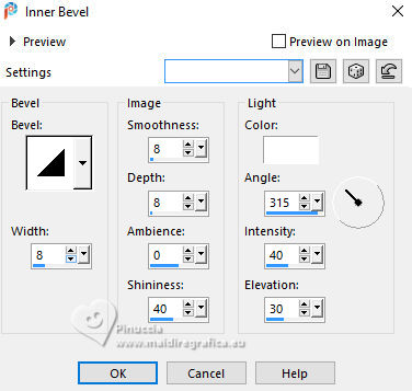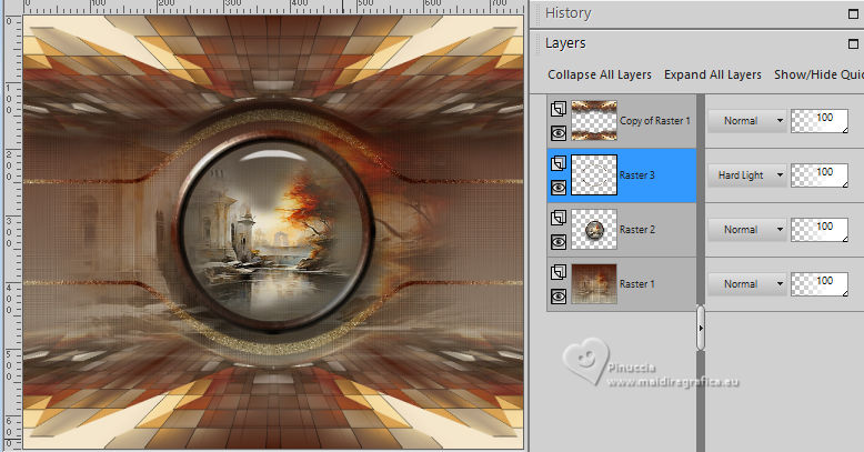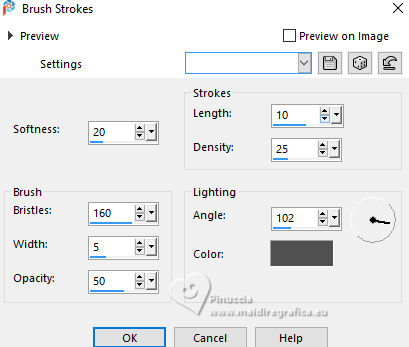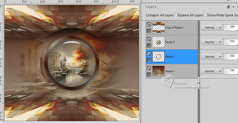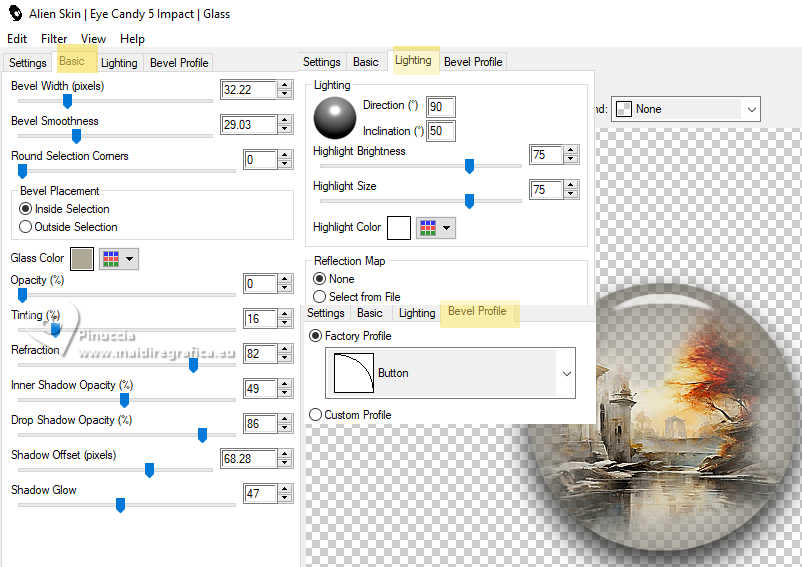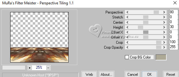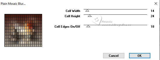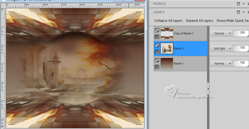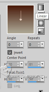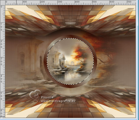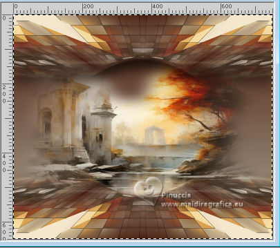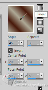 For this tutorial, you will need: ![]() Thanks for the tubes PqnaAlice. (The links of the tubemakers here). ![]() consult, if necessary, my filter section here Filters Unlimited 2.0 here Alien Skin Eye Candy 5 Impact - Glass here Simple - Pizza Slice Mirror here Mura's Meister - Perspective Tiling here Toadies - Plain Mosaic Blur here Graphics Plus - Cross Shadow here Filters Toadies and Graphics Plus can be used alone or imported into Filters Unlimited. (How do, you see here) If a plugin supplied appears with this icon ![]() You can change Blend Modes according to your colors. In the newest versions of PSP, you don't find the foreground/background gradient (Corel_06_029). You can use the gradients of the older versions. The Gradient of CorelX here ![]() Copy the texture TXT_031_tdstudio in the Textures Folder. Copy the Selection in the Selections Folder. 1. Choose 2 colors to work. Set your foreground color to #481a0b, and your background color to #aea996 ![]() Set your foreground color to a Foreground/Background, style Linear ![]() 2. Open a new transparent image 750 x 650 pixels. Flood Fill the transparent image with your Gradient.3. Layers>Duplicate. Selections>Select All. Open the landscape 179PaisagemByPqnaAlice ![]() Erase the watermark and go to Edit>Copy. Go back to your work and go to Edit>Paste Into Selection. Selections>Select None. 4. Effects>Modules Externes>Toadies - Plain Mosaic Blur. ![]() 5. Effects>Image Effects>Seamless Tiling. ![]() 6. Effects>Modules Externes>Simple - Pizza Slice Mirror. Edit>Repeat Pizza Slice Mirror. 7. Effects>Modules Externes>Mura's Meister - Perspective Tiling. ![]() 8. Activate your Magic Wand Tool , tolerance 0, feather 70,and click in the transparent part to select it. Press 5 times CANC on the keyboard. Selections>Select None. don't forget to set again the feather of your Magic Wand Tool to 0 Layers>Duplicate. Image>Mirror>Mirror Vertical. Layers>Merge>Merge Down. 9. Effects>Distortion Effects>Warp. ![]() 10. Effects>Reflection Effects>Rotating Mirror. ![]() 11. Effects>3D Effects>Drop Shadow. color #000000. ![]() Activate the Layer Raster 1. Layers>New Raster Layer. Selections>Select All. 12. Edit>Paste Into Selection - the landscape misted is still in memory. ![]() Selections>Select None. Layers>Properties>General>Blend Mode: Soft Light. ![]() Layers>Merge>Merge Down. 13. Effects>Texture Effects>Texture - select the texture TXT_031_tdstudio. ![]() 14. Adjust>Sharpness>Sharpen. Selections>Load/Save Selections>Load Selection From Disk Look for and load the selection WE_Xiki1 ![]() Layers>New Raster Layer. Change the Gradient's settings ![]() Flood Fill the selection with your Gradient.15. Selections>Modify>Contract - 20 pixels. Press CANC on the keyboard ![]() Be careful, you still have the misted tube in memory, which you still need. Do not use Edit>Cut, because you will lose it from memory. Layers>New Raster Layer. Reduce the opacity of your Flood Fill Tool to 50%. Flood fill the selection with your background color.Set again the opacity of your Flood Fill Tool to 100. Edit>Paste into Selection - the landscape's misted is still in memory. ![]() Effects>Edge Effects>Enhance. 16. Effects>Modules Externes>Alien Skin Eye Candy 5 Impact - Glass. ![]() 17. Selections>Select None. Activate the Layer below, Raster 2. ![]() Selections>Select All. Selections>Float. Selections Defloat. 18. Effects>Art media Effects>Brush Strokes - color #505050. ![]() Effects>3D Effects>Inner Bevel. ![]() Selections>Select None. 19. Activate the layer above, Raster 3. Layers>Merge>Merge Down. Effects>3D Effects>Drop Shadow, color black. ![]() 20. Layers>New Raster Layer. Selections>Load/Save Selections>Load Selection From Disk Look for and load the selection WE_Xiki2 ![]() Flood Fill the selection with your last Linear Gradient.![]() Selections>Select None. 21. Effects>Distortion Effects>Warp, same settings. ![]() Pick Tool ![]() Position X: 0,00 - Position Y: 140,00. ![]() Layers>Duplicate. Image>Mirror>Mirror Vertical. Layers>Merge>Merge Down. 22. Adjust>Add/Remove Noise>Add Noise. ![]() Layers>Properties>General>Blend Mode: Hard Light. ![]() 23. Image>Add Borders, 1 pixel, symmetric, foreground color. Selections>Select All. Image>Add Borders, 15 pixels, symmetric, whatever color. Selections>Invert. Flood Fill the selection with your last Linear Gradient.![]() 24. Adjust>Add/Remove Noise>Add Noise, same settings. ![]() Effects>Modules Externes>Graphics Plus - Cross Shadow, default settings. ![]() Selections>Select None. 25. Image>Add Borders, 1 pixel, symmetric, foreground color. Selections>Select All. Image>Add Borders, 40 pixels, symmetric, background color. Effects>3D Effects>Drop Shadow, color black. ![]() Effects>3D Effects>Drop Shadow, color black. ![]() Selections>Select None. Image>Add Borders, 2 pixels, symmetric, foreground color. 26. Open the tube 1265MulherByPqnaAlice ![]() Erase the watermark and go to Edit>Copy. Go back to your work and go to Edit>Paste as New Layer. Image>Resize, if necessary, for the provided tube to 70%, resize all layers not checked. Move the tube to the left.Effects>3D Effects>Drop shadow, at your choice. 27. Open the tube TituloWE_Xiki ![]() Erase the watermark and go to Edit>Copy. Go back to your work and go to Edit>Paste as New Layer. Move the text to your liking.28. Sign your work. Layers>Merge>Merge All and save as jpg. For the tubes of this version thanks PqnaAlice ![]() ![]() Your versions. Thanks ![]() Kika ![]() Kamelius ![]() Aria ![]() If you have problems or doubts, or you find a not worked link, or only for tell me that you enjoyed this tutorial, write to me. |