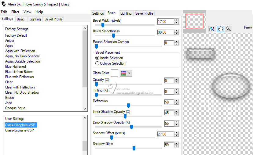 Effetti>Plugins>Alien Skin Eye Candy5 Impact - Glass