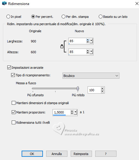 Immagine>Ridimensiona, all'85%, tutti i livelli non selezionato.