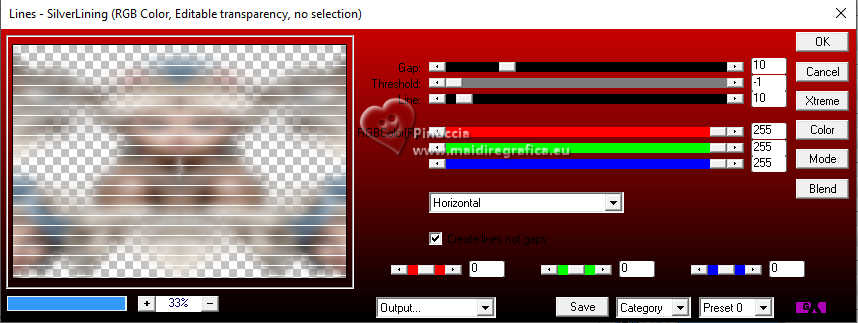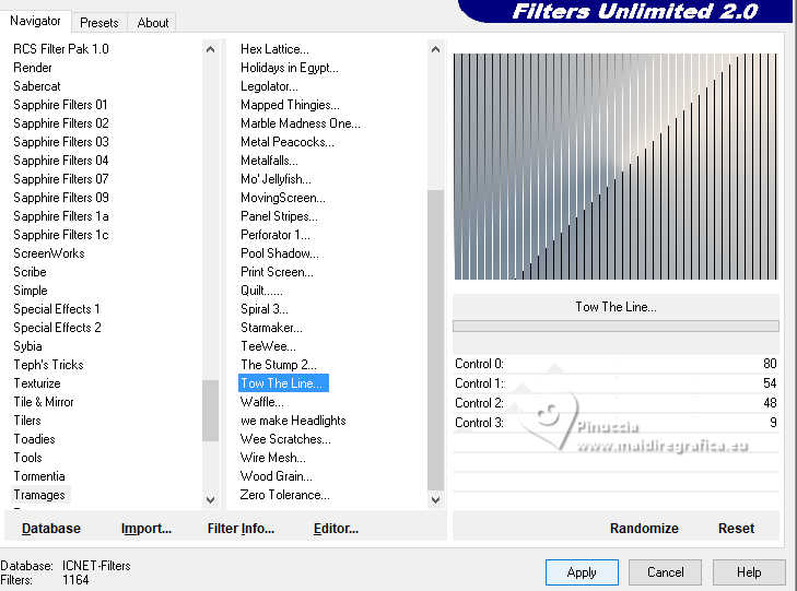 3. Effects>Plugins>Filters Unlimited 2.0 - Tramages - Tow the line, default settings.