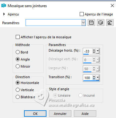 5. Effets>Effets d'image>Mosaïque sans jointures, horizontale coché.