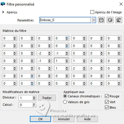 Effets>Filtre personnalisé - sélectionner le preset Emboss 6