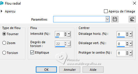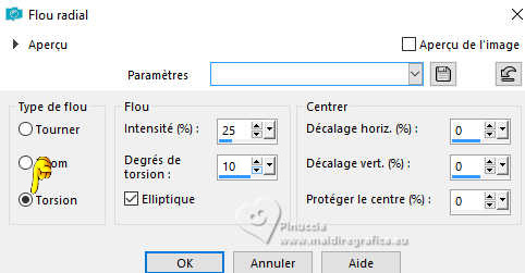 Réglage>Flou>Flou radial, comme précédemment mais Torsion coché
