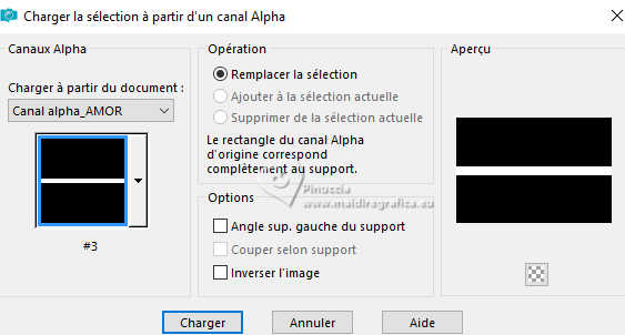 3. Sélections>Charger/Enregistrer une sélection>Charger à partir d'un canal alpha.