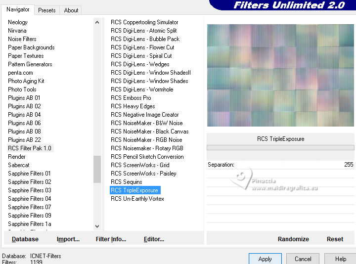 6. Effects>Plugins>Filters Unlimited 2.0 - RCS Filter Pak 1.0 - RCS TripleExposure, default settings.