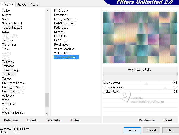 5. Effects>Plugins>Filters Unlimited 2.0 - Two Moon - Wish it would rain.