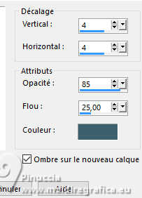 Effets>Effets 3D>Ombre portée, couleur #3d606c (couleur #1a3d7a dans ma dexième version),