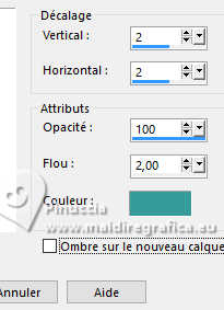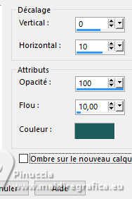 27. Effets>Effets 3D>Ombre portée, couleur d'arrière plan (couleur 3 #205c5c).