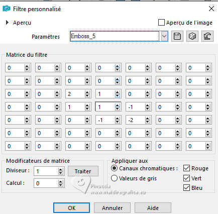 Effets>Filtre personnalisé - sélectionner le preset Emboss 5