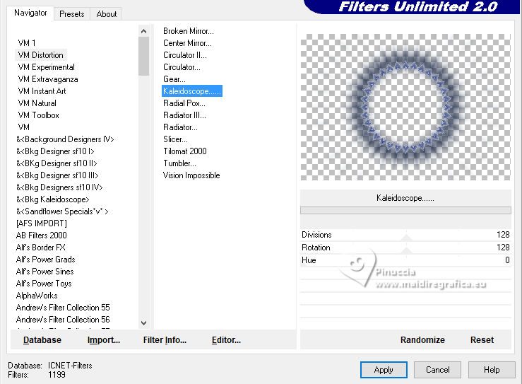 Effets>Modules Externes>Filters Unlimited 2.0 - VM Distortion - Kaleidoscope, par défaut.