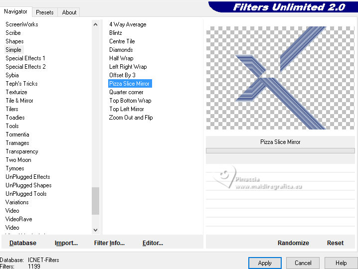 6. Effets>Modules Externes>Filters Unlimited 2.0 - Simple - Pizza Slice Mirror.