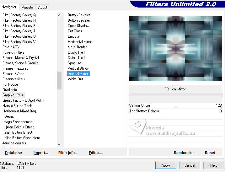 Effets>Modules Externes>Filters Unlimited 2.0 - Graphics Plus - Vertical Mirror, par défaut.