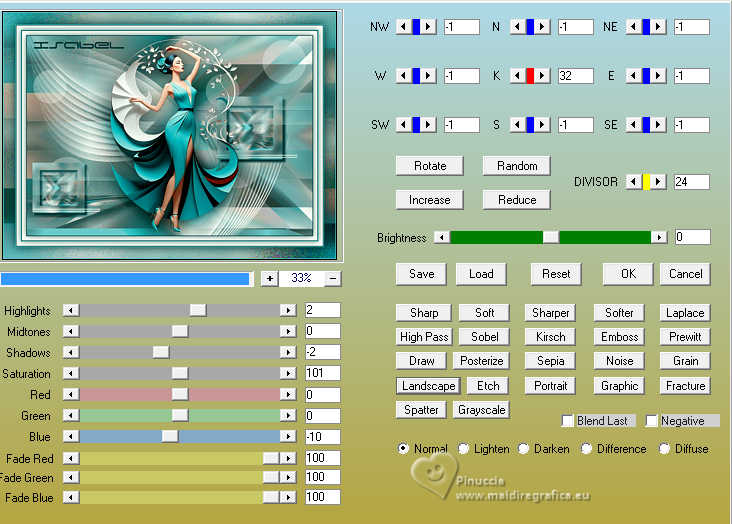 17. Effets>Filtre personnalisé - sélectionner le preset Emboss 4 et ok.